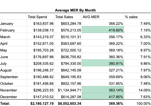 This conversation is critical for defining what type of media budget allocation will be required to reach those ambitious goals. Our approach is to review how this past year performed, zoom out to analyze trends from the past several years, and identify the key dates such as promotions, product launches and seasonal moments that we can leverage to drive up MER or ROAS and maximize the targets set for us.
